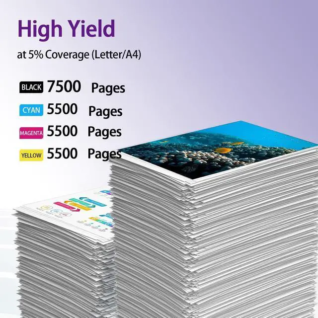 [Print Yield] Black cartridges deliver up to 7,500 pages, while color cartridges provide up to 5,500 pages (at 5% coverage on A4 paper)