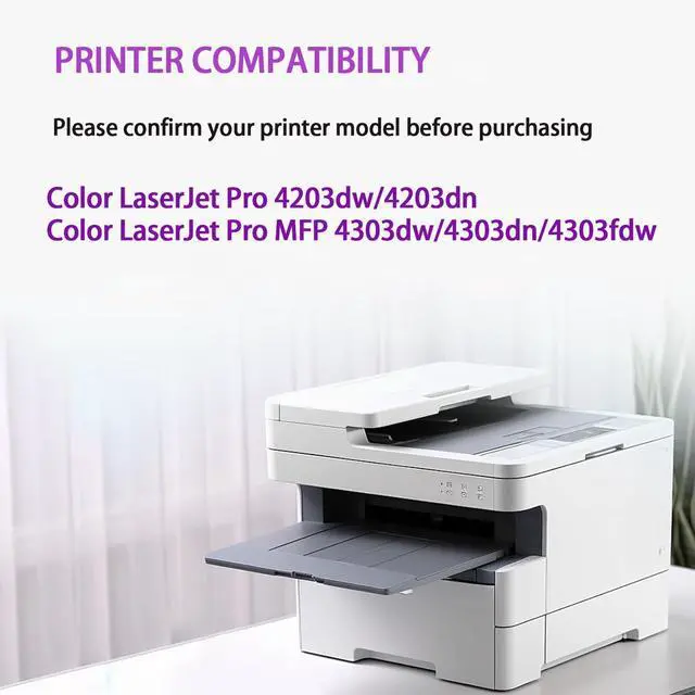 [Printer Compatibility] Toner cartridges are compatible with Color LaserJet Pro 4203dw, 4203dn, MFP 4303dw, 4303dn, and 4303fdw Printers