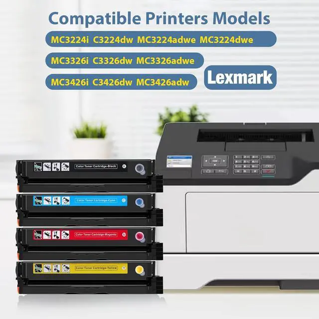 Compatible Printer:MC3224 toner cartridges for Lexmark MC3200 MC3300 MC3400 series printer MC3224i MC3326i MC3426i C3326dw C3224dw C3426dw MC3224dwe MC3224adwe MC3326adwe color multifunction printer(Print.Copy.Scan.Fax.Email).