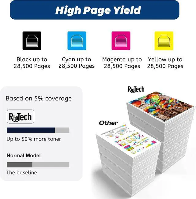 High Page Yield- Up to 30,000 pages per black toner cartridges, prints up to 28,000 pages per 218a color toner cartridges at 5% coverage