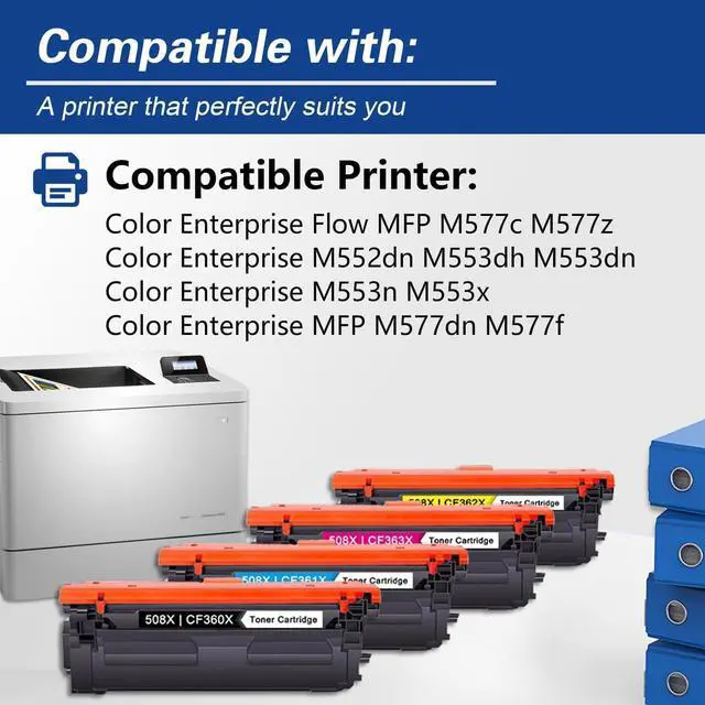 This Cartridge Works with: Color Enterprise Flow MFP M577c M577z Enterprise M552dn M553dh M553dn M553n M553x Enterprise MFP M577dn M577f Printer