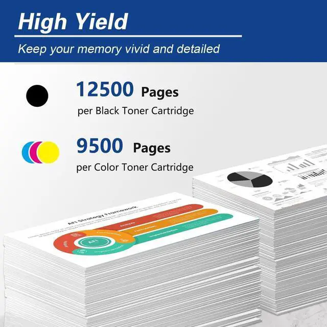 High Page Yield: 12500 Pages for CF360X Black Toner Cartridge and 9500 Pages for CF361X CF362X CF363X Color Toner Cartridge at 5% Coverage