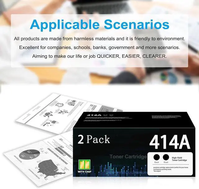 Toner Cartridges (with Chip) Compatible Replacement for HP 414a Toner Cartridge and also Compatible for HP 414x Toner Cartridge 2 pack high yield