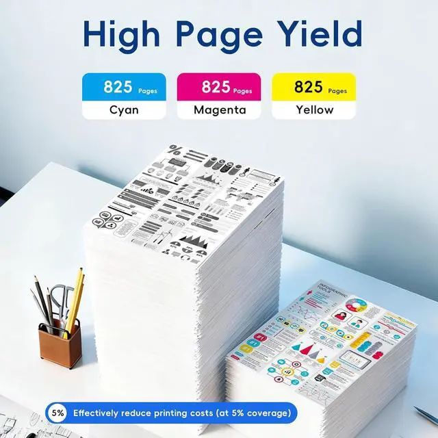 High Page Yield: 825 pages per color 933XL ink cartridges (Letter A4, at 5% coverage)