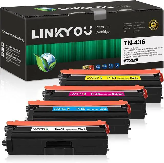 Package Inside: 4 Pack Black/Cyan/Magenta/Yellow TN436 Compatible Toner Cartridges