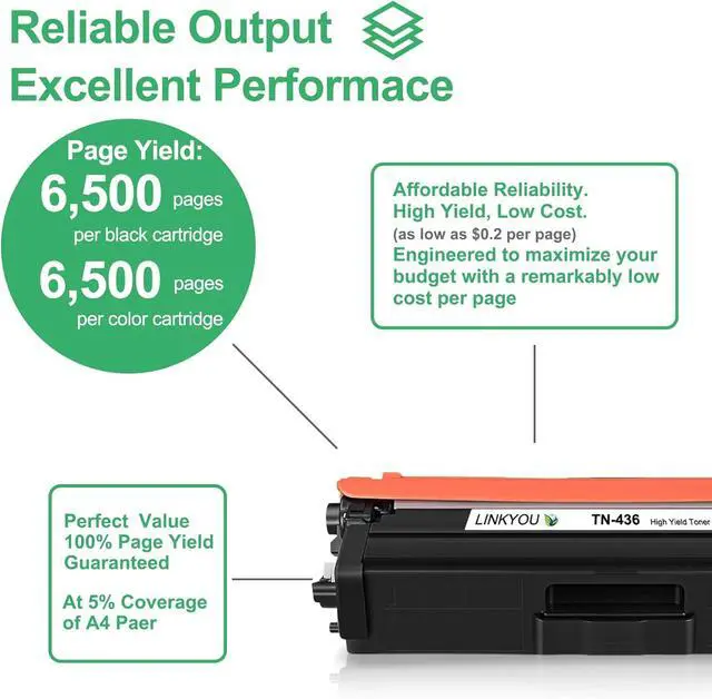 Page Yield: Get up to 6,500 pages per black cartridge and 6,500 pages per color cartridge based on 5% coverage (letter A4)