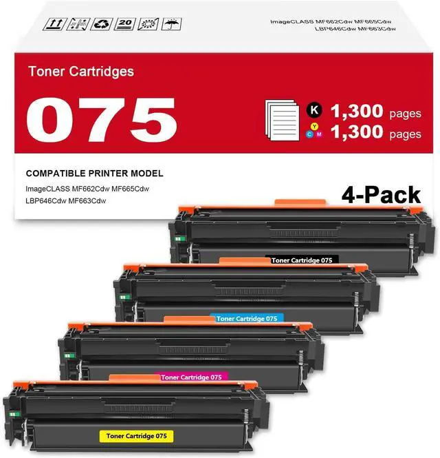 You will receive a set of four 075 toner cartridges in black, cyan, yellow, and magenta