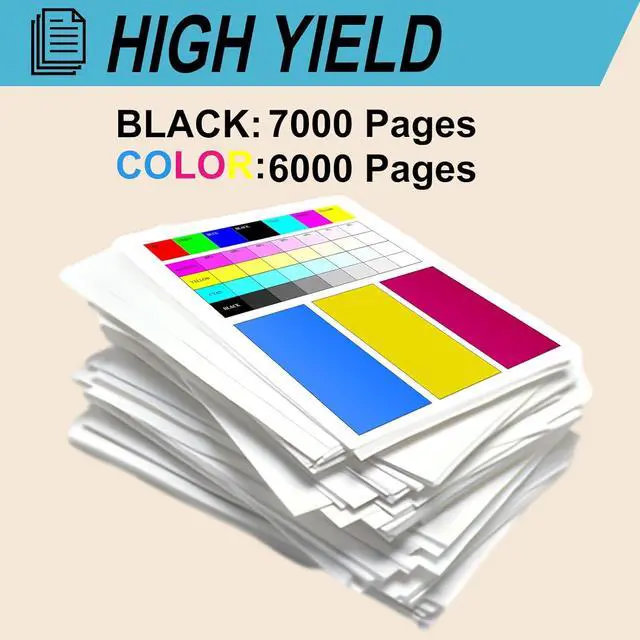 • High Page Yield: Black Toner Cartridge delivers an impressive 7000 pages, while the color Toner Cartridge produces vibrant prints across 6000 pages maximizing your printing efficiency