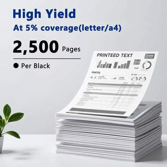 High Page Yiled: 2,500 pages per Black cartridge at 5% coverage (Letter/A4).