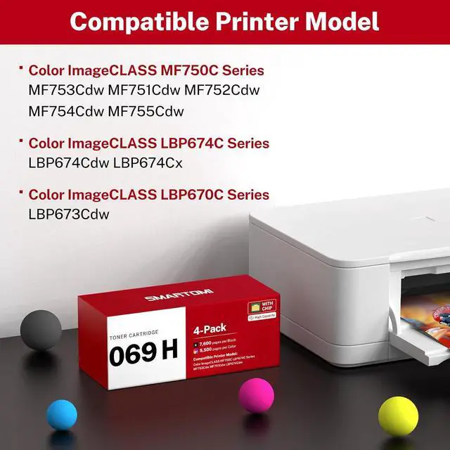 With Chip Version: Each 069h 069 toner cartridge is equipped with an advanced chip, enabling seamless printer recognition and accurate ink level display. Enjoy effortless installation and quick, reliable recognition.