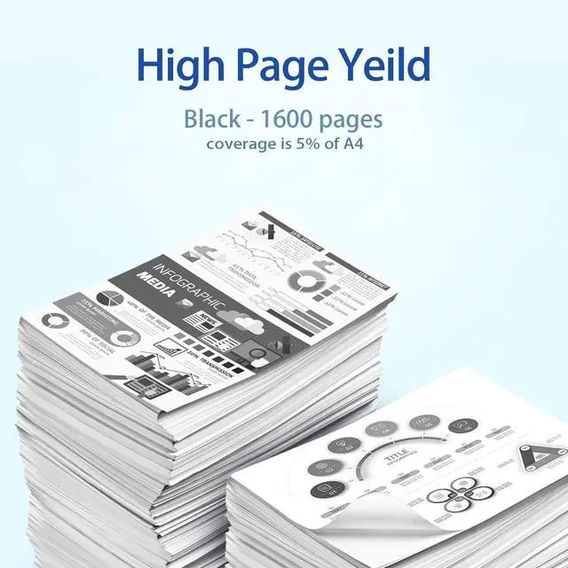 High Page Yield : Print up to 1,600 pages per black cartridge (at 5% coverage, Letter/A4). Spend less time replacing toner, and more time getting work done