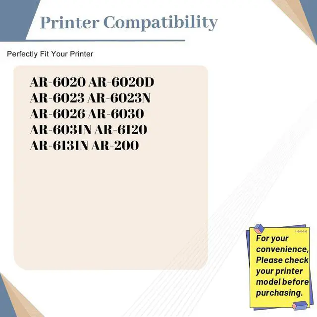 Compatible Printer List: for Sharp AR-6020 AR-6020D AR-6023 AR-6023N AR-6026 AR-6030 AR-6031N AR-6120 AR-6131N AR-200 Printer