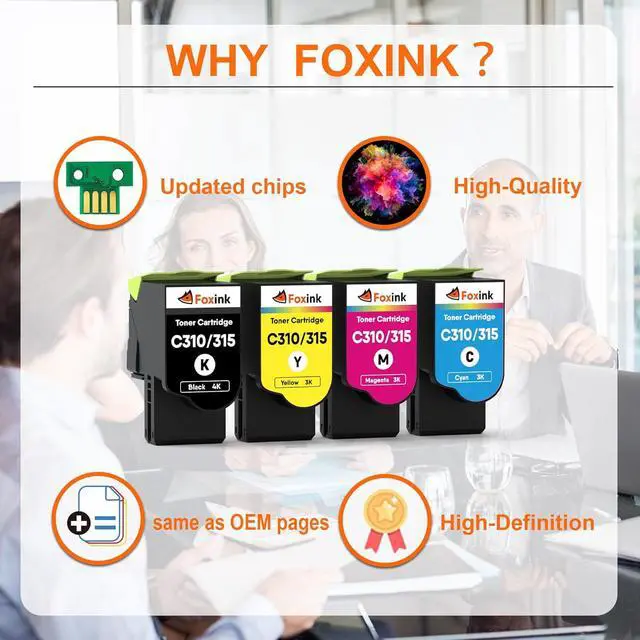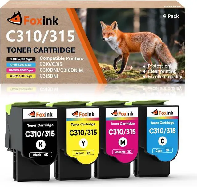 FOXINK Toner Cartridge up to 4,000 pages per black Xerox C315 toner cartridges, 3,000 pages per color xerox toner cartridges c310/c315.