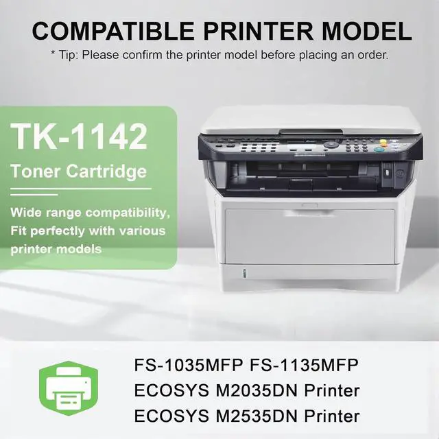 Compatible Printers for TK-1142 Toner Cartridge: FS-1035MFP FS-1135MFP ECOSYS M2035DN M2535DN Laser Printer