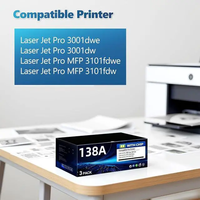 Compatible Printer: 138A Toner Cartridge Compatible for Pro 3001dwe 3001dw; MFP 3101fdwe 3101fdw Printers