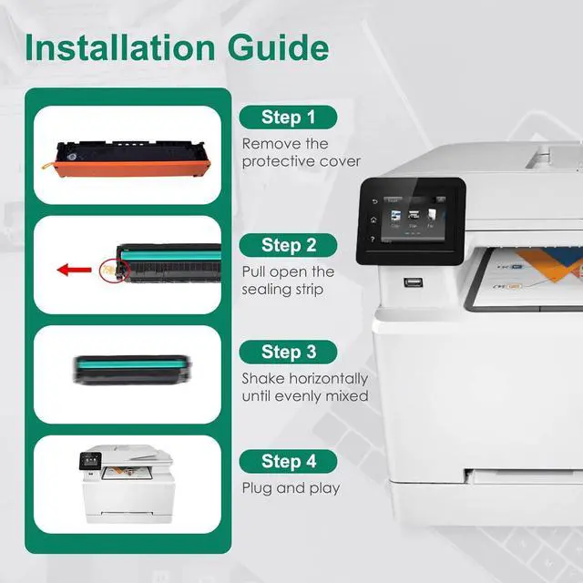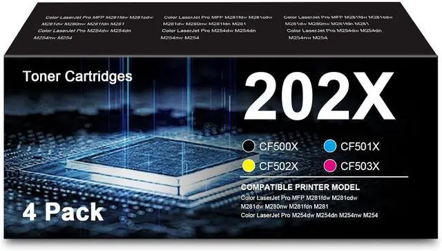 Package Includes: 202X Compatible Toner Cartridge 4 Pack ( 1×Black CF500X 1×Cyan CF501X 1×Yellow CF502X 1×Magenta CF503X)