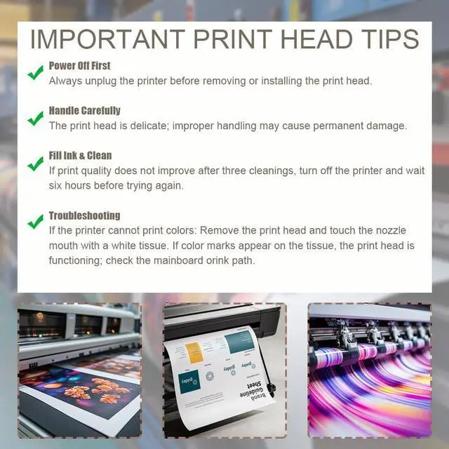 High-Precision 6-Color Inkjet Performance Engineered with advanced high-precision inkjet technology, this 6 color printhead delivers professional-grade print clarity with sharp text and vibrant colors. It's designed to restore optimal printing performance, ensuring each printout meets high-quality printing standards.