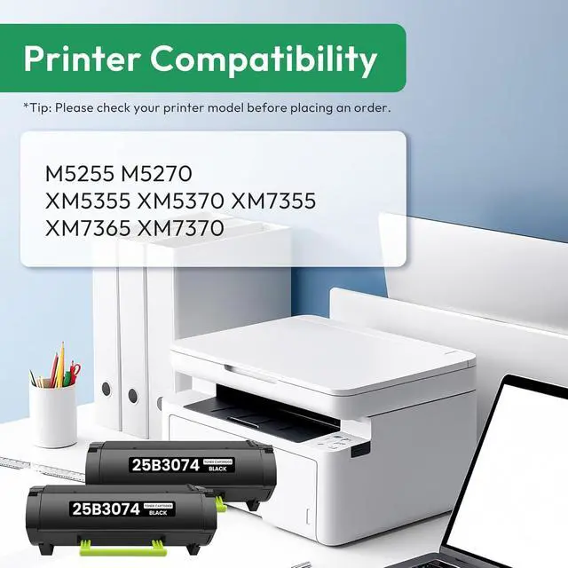 Easy to install & Post-Purchase Support: Simply open the printer compartment, remove the old cartridges, insert the 25B3074 toner cartridge, and close the door. For any issues with the product, our dedicated support team is ready to assist.