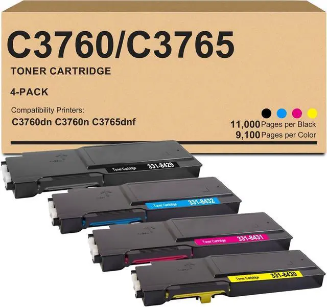 11,000 Pages per 331-8429 Black Toner, 9,100 Pages per 331-8432 331-8431 331-8430 Toner Cartridge(Based on 5% letter / A4 coverage rate)