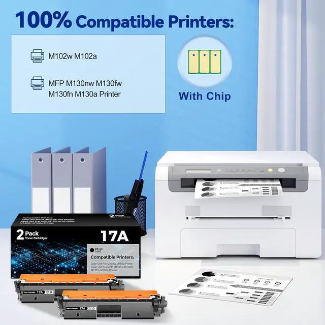 Compatible With HP Printers: 17A toner cartridges compatible for HP Color Pro M102w, M102a, Pro MFP M130fn, MFP M130nw, MFP M130fw, MFP M130a, M102 M130 Series Printers.