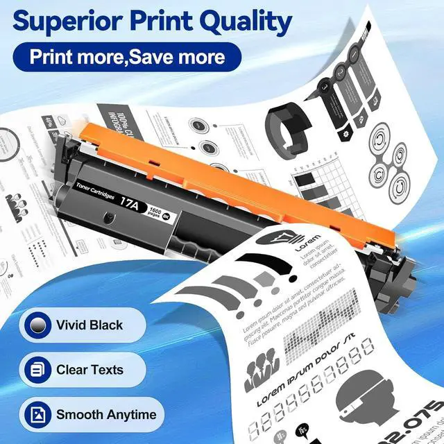 Upgrade your printing experience: Print without streaks, smudges, or fading. 17A toner cartridges are suitable for high-volume office printing, professional documents, presentations and marketing materials