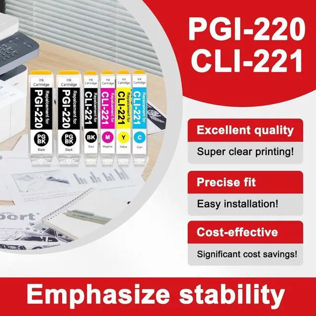 • PGI-220 CLI-221 Ink Features: Outstanding reliability, No clogging;smooth printing;hassle-free;premium quality;cost-effective;Easy to refill;saving time and money.