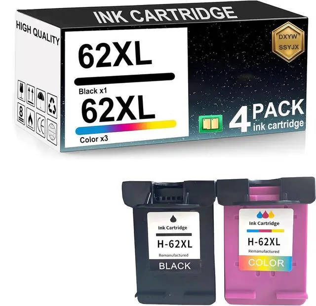[PACKAGE CONTENTS]: for HP 62XL Ink Cartridge (1 Black, 1 Blue, 1 Red, 1 Yellow)