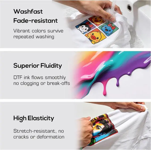 1.Tintivo's premium DTF transfer printer ink is crafted from superior raw materials, delivering an even consistency and exceptional flow that resists nozzle clogging.