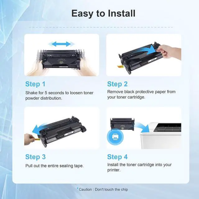 Excellent quality: Efficient for 58A and chip toner, achieving clear text and vivid color printing. These CF258A 58A boxes have already installed the original chips, so there is no need to transfer the original 58A or 58X toner chips to them