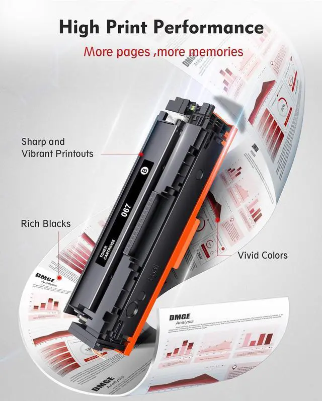 Reliable Performance: DMGE replacement for canon 067 toner cartridge set is manufactued in ISO 9001 and ISO 14001 standard facilities, ensuring vibrant colors and stable quality printouts