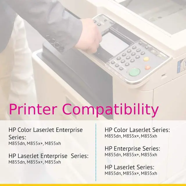 Compatible with HP Printers: Color LaserJet Enterprise M855dn Color LaserJet Enterprise M855x+ Color LaserJet Enterprise M855xh Color LaserJet M855dn Color LaserJet M855x+ Color LaserJet M855xh Enterprise M855dn Enterprise M855x+ Enterprise M855xh LaserJet M855dn LaserJet M855x+ LaserJet M855xh LaserJet Enterprise M855dn LaserJet Enterprise M855x+ LaserJet Enterprise M855xh