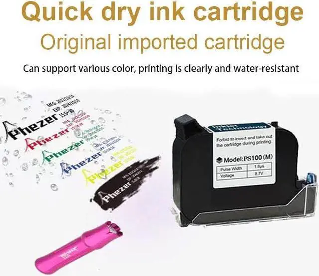 [42ml Quick-Drying Ink Cartridge Included]: This handheld inkjet printer comes with a black original high-definition 42ml quick-drying ink cartridge that can effectively prevent from ink-leaking or nozzle-blocking problem in the maximum limit and provide excellent smooth & brightly-colored printing experience. Ink colors available: Black, white, Yellow, red, blue, green, invisible, UV.