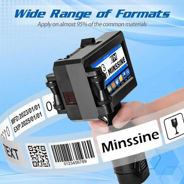 Minssine handheld inkjet printer enhances productivity and operational efficiency across various industries, including packaging, food, logistics, retail, bookstore, woodworking, manufacturing, and hardware.