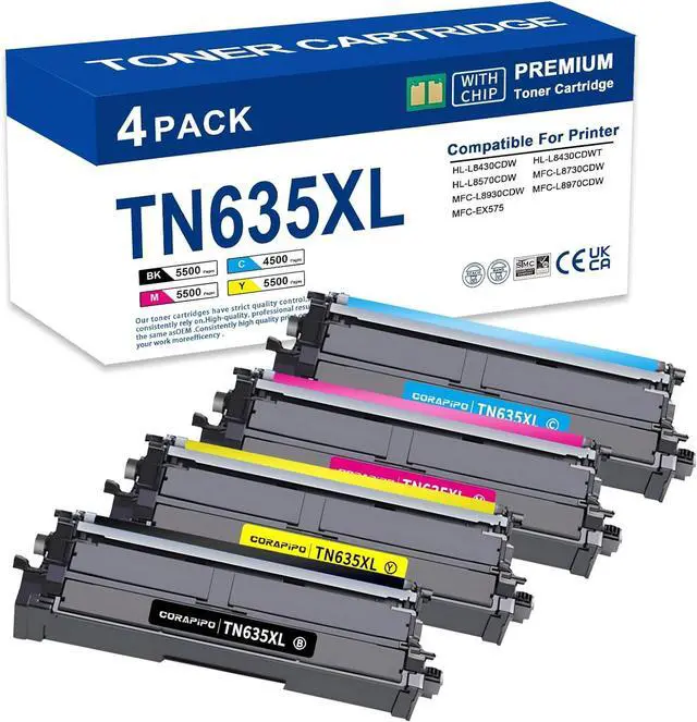 Package Content : Lasted Version TN635XL Toner Cartridge Set ,High Yield TN635 Verison,Compatible for Brother TN635 TN635XL TN635XXL Toner Cartridge, including TN635XL Black,TN635XL Cyan,TN635XL Yellow,TN635XL Magenta