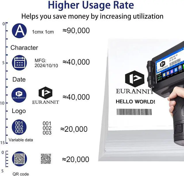 Packing List- 1×Handheld inkjet printer, 1×Touch pen, 1×Power adapter, 1×U disk, 1×Ink cartridge (black), 1×Location plate1×manual. (Eurannit provides complete and clear operation video tutorials as well as technical support.)