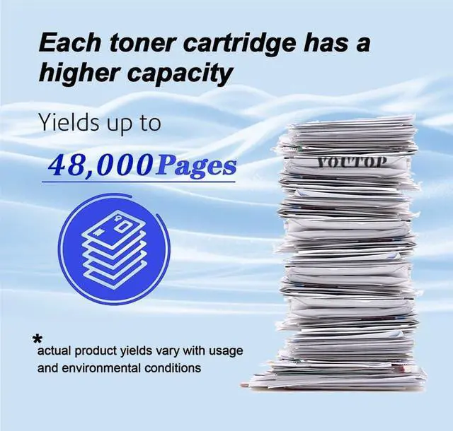 High Page Yield: 48,000 Pages per cartridge at 5% coverage (Letter, A4).