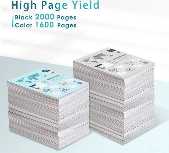 HIGH PAGE YIELD: HP962xl/962 ink cartridges combo pack provide up to 2000 pages for each black 962XL Ink Cartridge; 1600 pages for each color 962XL ink cartridges (cyan,magenta,yello) at 5% coverage on A4 paper.