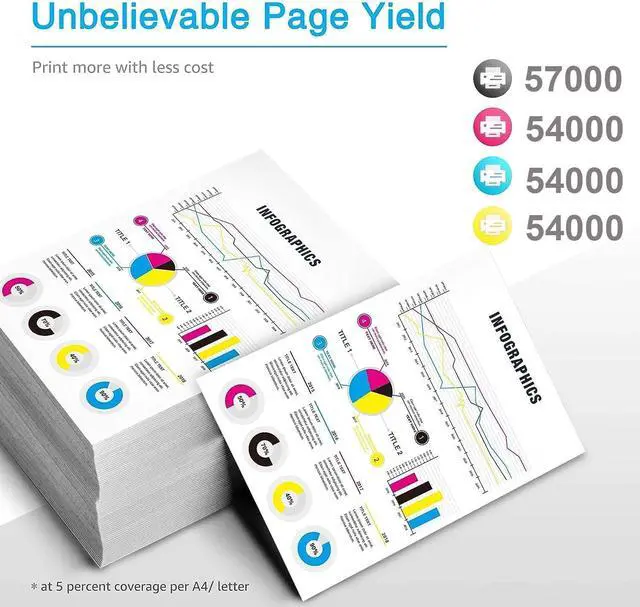 High page yield: 57,000 pages per Black toner cartridge,54,000 Pages per Color toner cartridge at 5% coverage of Letter/A4