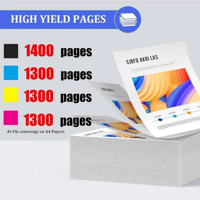 1. Page yields are estimated based only on industry standard 5% coverage, if more than 5% is printed per page, page yield will be significantly reduced.