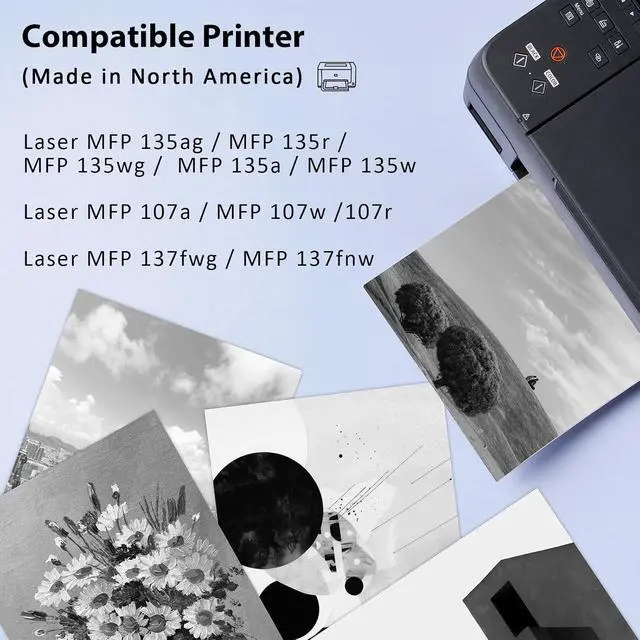 Compatible Printers: HP Laser MFP 137fnw / 135a / 135w / 107a / 107w Printer.