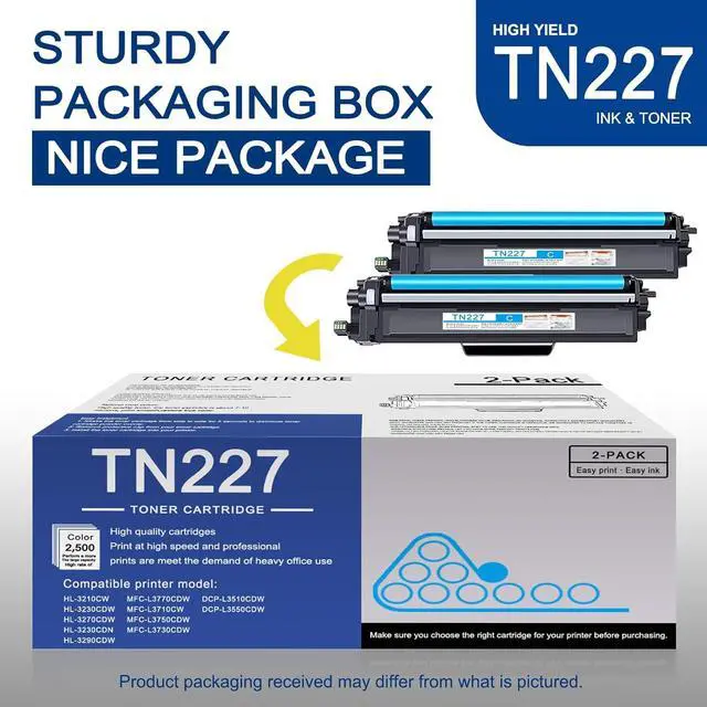 2 Pack TN227 Cyan Toner Cartridge replacement for Brother TN227 Toner Cartridge.