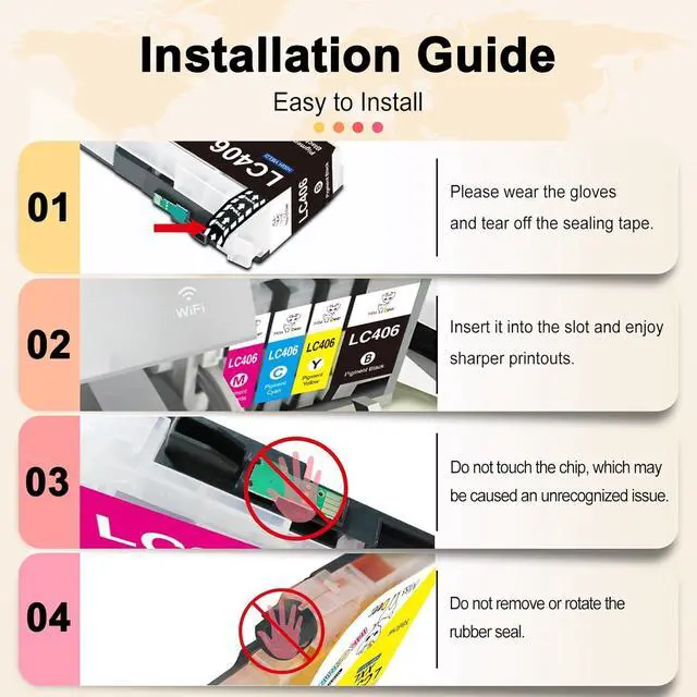 : Prevent Ink Leakage. Package includes 1 x User Guide, 1 x Disposable glove, 3 x LC406 Black, 3 x LC406 Cyan, 3 x LC406 Magenta, 3 x LC406 Yellow Ink Cartridges (Total 12 Pack, Compatible LC406 Ink Cartridges Replacement for Brother Ink LC 406)