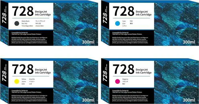 Easy Installation and Use: Our 728 ink cartridges are designed for easy installation and use, so you can spend less time troubleshooting and more time printing. Simply pop them in, and you're ready to go
