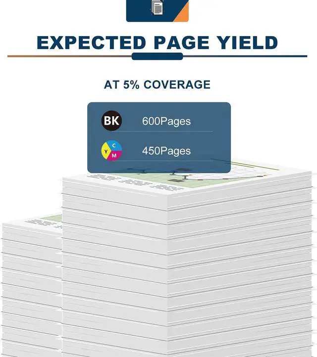 High Page Yield: 600 Pages per 64XL black ink cartridge; 450 Pages per 64XL color ink cartridge.