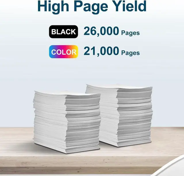 High Page Yield Up to 23,000 pages per Black at 5% coverage of A4 paper, Up to 18,000 pages per Color at 5% coverage of A4 paper