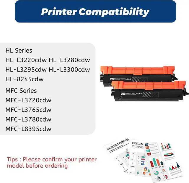 Compatible ModelsCompatible for Brother HL-L3220CDW, HL-L3280CDW, HL-L3295CDW, HL-L3300CDW, HL-L8245CDW, MFC-L3720CDW, MFC-L3765CDW, MFC-L3780CDW, and MFC-L8395CDW Laser Printers