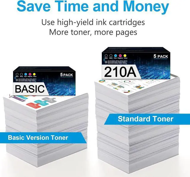 High-yield performance: 210A black toner: 2,500 pages, color toner (cyan/yellow/magenta): 2,300 pages each, based on 5% coverage (Letter/A4), reduces replacement frequency and ensures long-lasting use