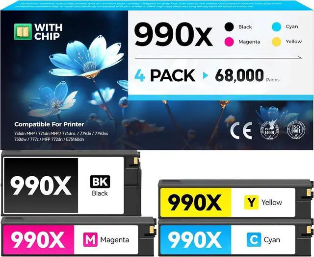 Total Packges: 4-Pack of 990X Ink Cartridges Set - (1*Black 990X Ink Cartridges, 1*Cyan 990X Ink Cartridges, 1*Magenta 990X Ink Cartridges, 1*Yellow 990X Ink Cartridges), Cost per page $0.01a.