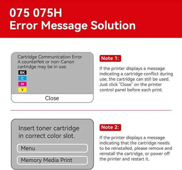 Printer Compatibility: 075 075H toner cartridges are exclusively designed for Canon Color imageCLASS MF660C and LBP640C series printers, perfectly compatible with MF665Cdw MF663Cdw MF662Cdw LBP647Cdw and LBP646Cdw printers