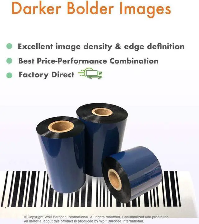 2.36" x 1476' / 60 mm x 450 m Premium Resin Enhanced Wax Thermal Transfer Ribbon 1" Core Coated Side Out.